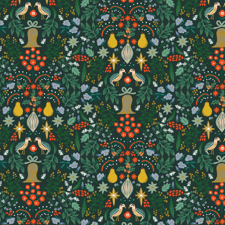 5 Yards Backing – Rifle Paper Co Holiday Classics – Partridge in Evergreen Metallic