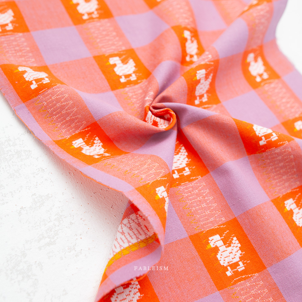 The Fine and Dandy collection by Fableism is a 100% cotton woven assortment that feels warm, nostalgic, and quietly playful, with an emphasis on texture, color depth, and classic design reimagined. Grounded in rich hues of terracotta red and creamy peach balanced by cool tones of royal blue, and dusty lavender. Fine and Dandy is a collection that celebrates woven texture, balanced color stories, and subtle whimsy. Its mix of weights, patterns, and charming details (the ducks!) makes it equally suited for quilts, garments, and cozy, design-forward home projects.