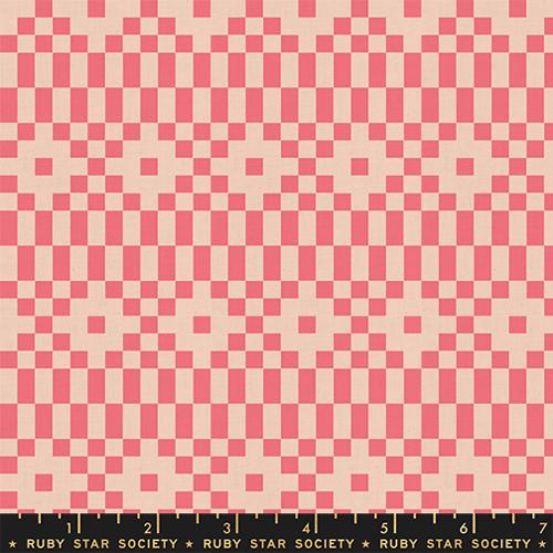 LoFi Bitmapped in Neon Coral by Rashida Coleman-Hale, the first linen collection from Ruby Star Society. Sold in quarter yard increments, cut continuously.