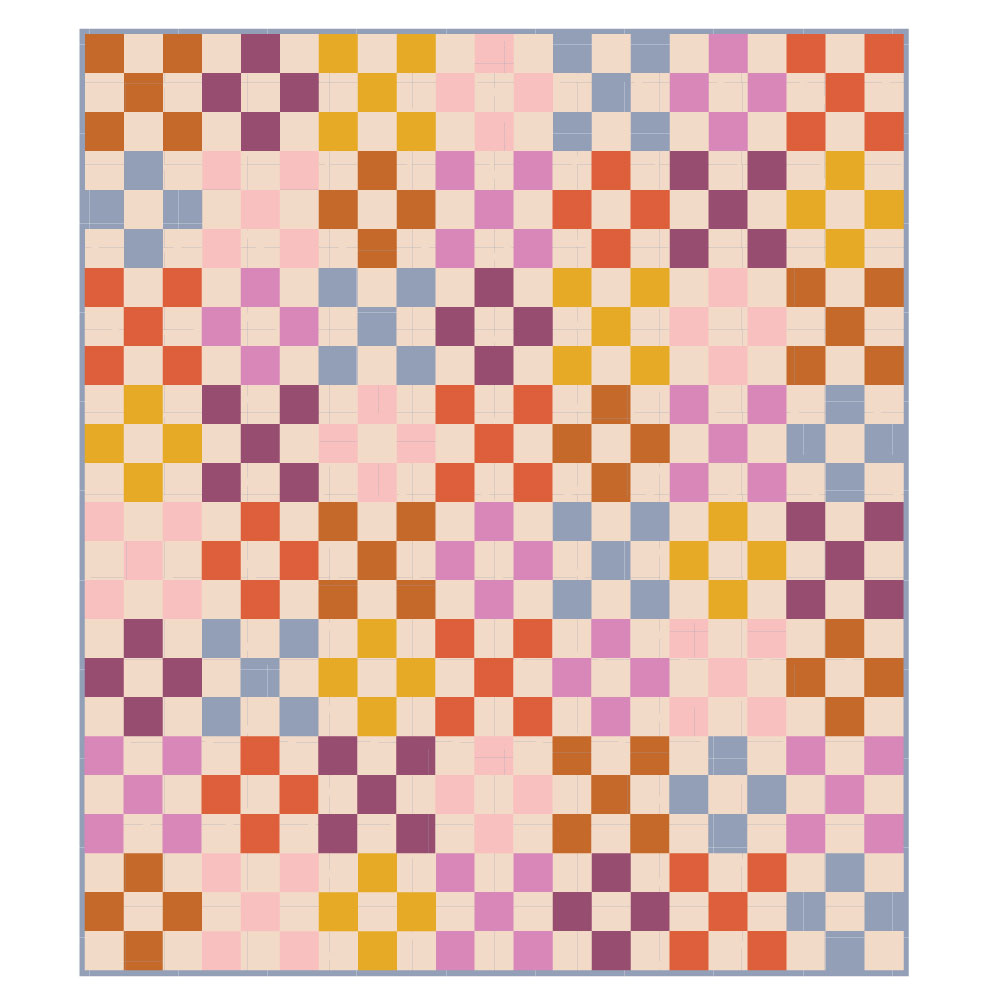This is for a throw size Nine-Patch Quilt. This fabric will make the top only and does not include backing or binding. The nine-patch pattern comes as a downloadable PDF with the purchase of the quilt kit. The quilt top finishes at 63″ x 63″, or there will be enough blocks to add another row making it 63″ x 72″.