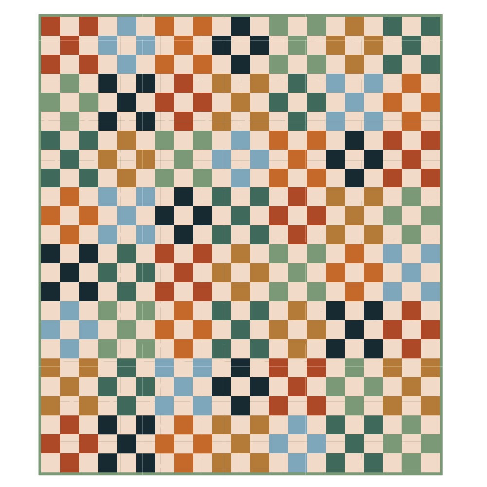 This is for a throw size Nine-Patch Quilt. This fabric will make the top only and does not include backing or binding. The nine-patch pattern comes as a downloadable PDF with the purchase of the quilt kit. The quilt top finishes at 63″ x 63″, or there will be enough blocks to add another row making it 63″ x 72″.