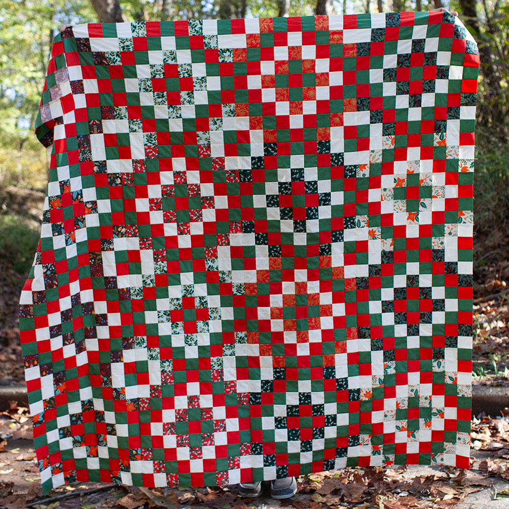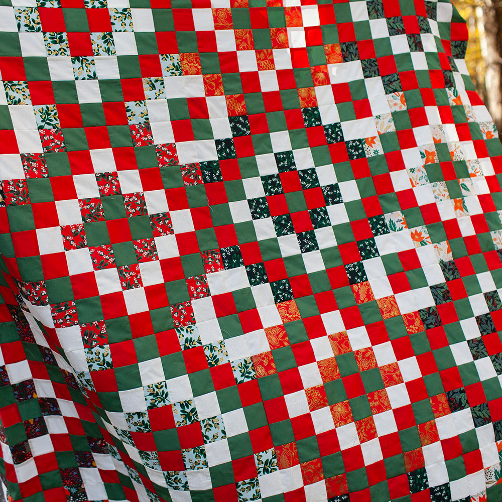 This is fabric for the throw Nine-Patch Quilt measuring 63″ x 72″. This is for the quilt top only. Pattern available here. Discounted Christmas backing fabric is available.
