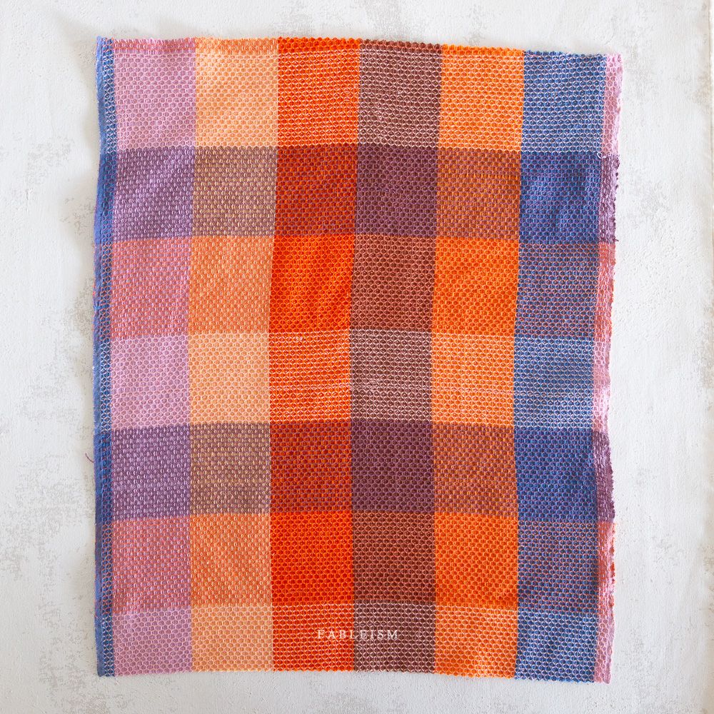 Waffle Happy Checkers in Sorbet by Fableism is 54/55″ wide. Sold in quarter yard increments, cut continuously.